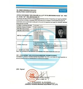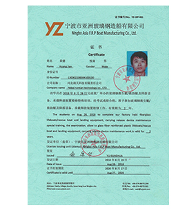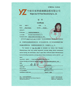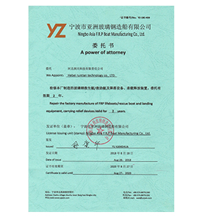 寧波市亞洲玻璃鋼造船有限公司救生艇授權證書